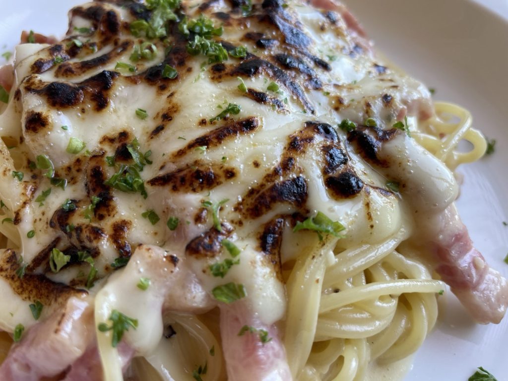 『焼きチーズのカルボナーラ』